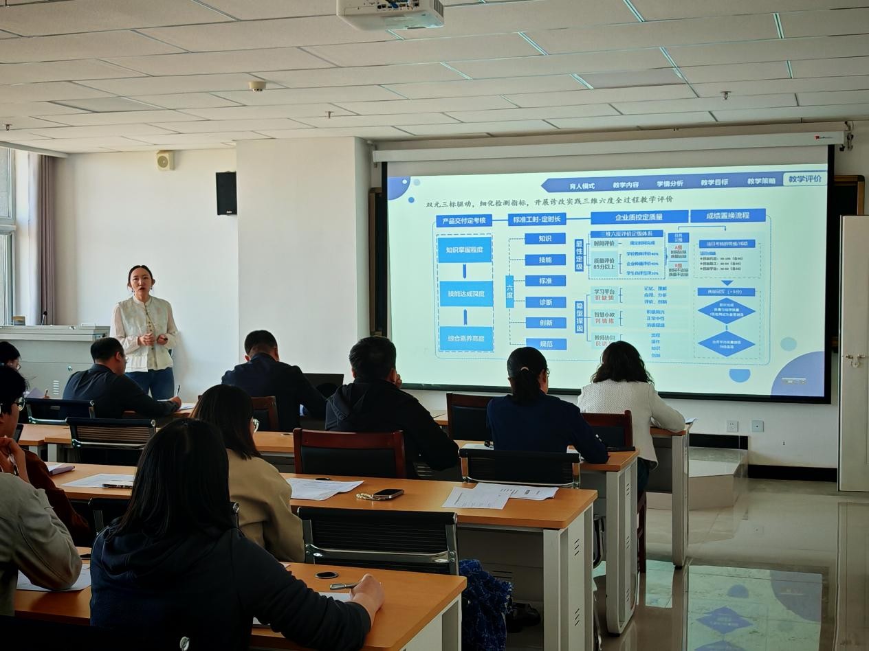 此次大賽共有6個(gè)參賽隊(duì)參加。大賽依據(jù)專業(yè)課程特點(diǎn),劃分了專業(yè)課程一組、專業(yè)課程二組兩個(gè)參賽組別。比賽現(xiàn)場(chǎng),緊張而熱烈的氛圍彌漫在每一個(gè)角落。各參賽隊(duì)嚴(yán)格按照省賽的高標(biāo)準(zhǔn)要求,依次完成教學(xué)實(shí)施報(bào)告、無(wú)生授課及答辯三個(gè)關(guān)鍵環(huán)節(jié)。在教學(xué)實(shí)施報(bào)告環(huán)節(jié),參賽教師們猶如運(yùn)籌帷幄的將領(lǐng),用清晰的邏輯、詳實(shí)的數(shù)據(jù)和深刻的教學(xué)反思,闡述著自己對(duì)于課程的理解與設(shè)計(jì)。他們不僅展示了教學(xué)目標(biāo)的精準(zhǔn)設(shè)定、教學(xué)內(nèi)容的合理組織,更分享了在教學(xué)過(guò)程中如何運(yùn)用創(chuàng)新方法激發(fā)學(xué)生的學(xué)習(xí)興趣和潛能。