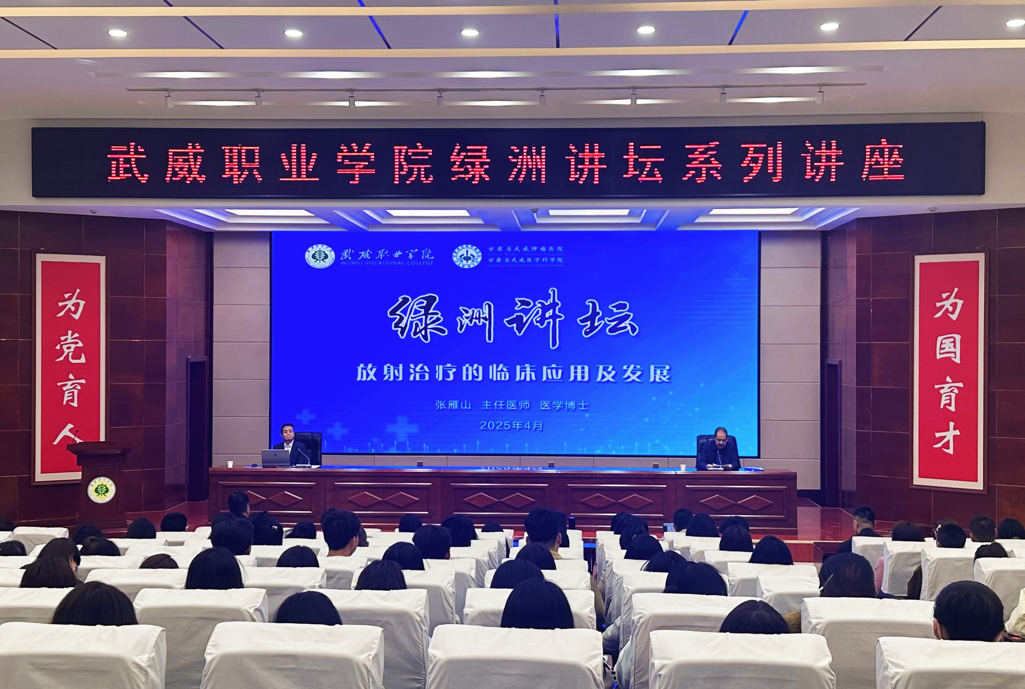 4月17日,學(xué)校特邀甘肅省武威腫瘤醫(yī)院副院長(zhǎng)、重離子中心主任張雁山博士,在菁英廳作了“放射治療臨床應(yīng)用及發(fā)展”專題講座。學(xué)校黨委副書記翟存祥主持講座,醫(yī)學(xué)技術(shù)學(xué)院、藥學(xué)院、護(hù)理學(xué)院教師,2024級(jí)放射治療技術(shù)專業(yè)學(xué)生共210余人聆聽了講座。